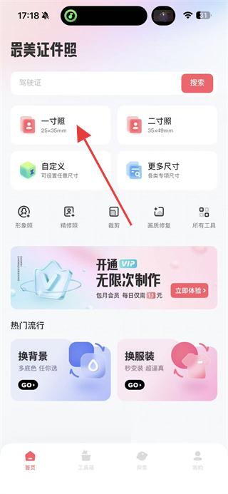 1、打開最美證件照APP,點(diǎn)擊一寸照,進(jìn)入一寸照設(shè)置頁面。