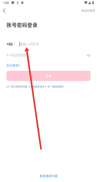 4、在切換為賬號密碼登錄時,點擊輸入框填寫手機號和登錄密碼信息后,點擊登錄按鈕即可完成登錄。