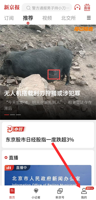 1、打開新京報APP,在首頁點擊右下角我的選項。