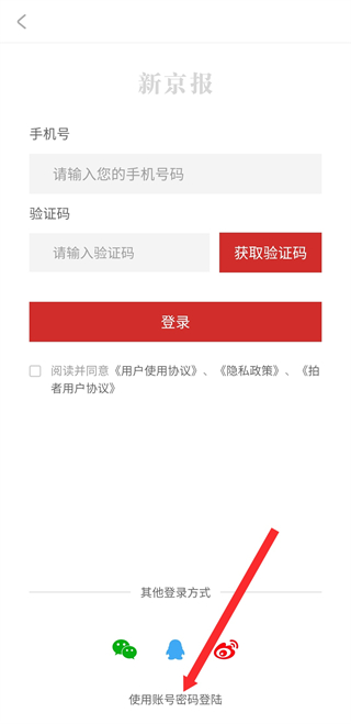 3、在登錄界面點擊使用賬號密碼登陸,進入賬號密碼輸入頁。