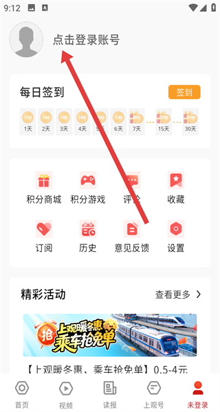 1、打開上觀新聞APP,點擊右下角的未登錄,進入個人功能頁面。