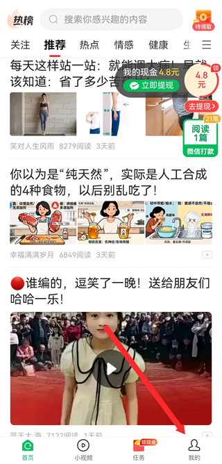 1、打開中青看點APP,點擊底部我的按鈕,進入個人的頁面。