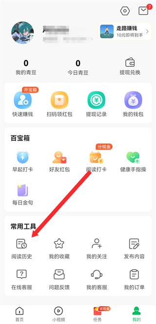 2、在個人頁面的常用工具區(qū)域,點擊閱讀歷史,進入歷史記錄頁面。