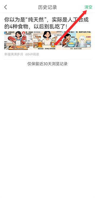 3、在歷史記錄的頁面,我們需要點擊右上角清空的按鈕。
