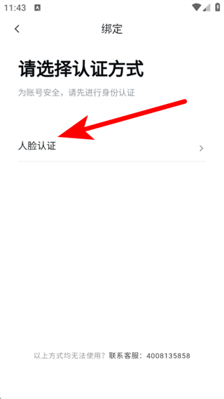 2、進(jìn)入請選擇認(rèn)證方式的頁面,我們需要點(diǎn)擊人臉認(rèn)證的按鈕。