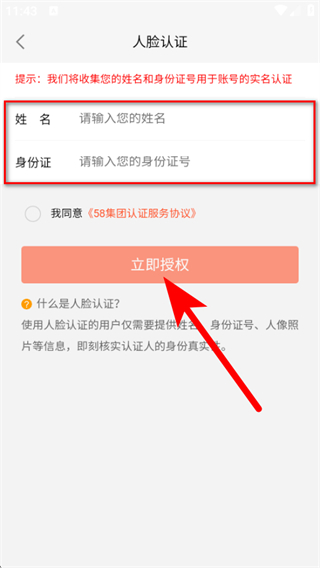 3、在頁面輸入姓名、身份證號(hào),點(diǎn)擊立即授權(quán),完成人臉認(rèn)證后即可登錄。