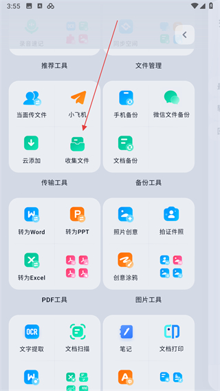 3、在收集文件頁(yè)面,點(diǎn)擊遠(yuǎn)程收文件選項(xiàng)。