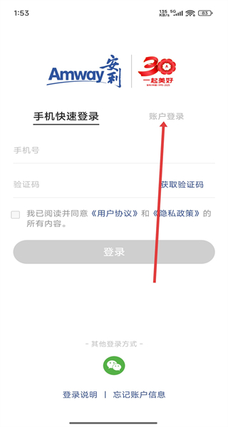 2、在進(jìn)入到登錄界面時,可以點擊右側(cè)賬戶登錄按鈕,進(jìn)行切換登錄方式。