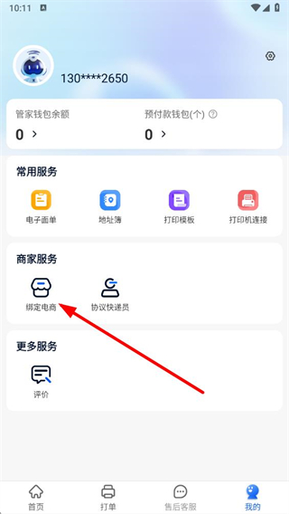 2、在個(gè)人中心頁(yè)面中,找到綁定電商選項(xiàng)并點(diǎn)擊,進(jìn)入電商店鋪?lái)?yè)面。
