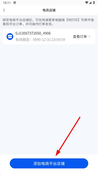 3、在電商店鋪?lái)?yè)面,點(diǎn)擊添加電商平臺(tái)店鋪按鈕,進(jìn)入添加電商店鋪?lái)?yè)面。