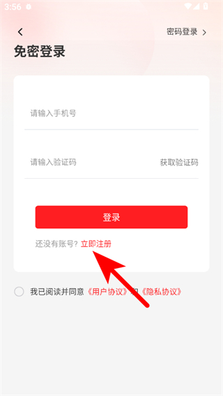 3、在登錄頁(yè)面,點(diǎn)擊立即注冊(cè)選項(xiàng),進(jìn)入注冊(cè)界面。