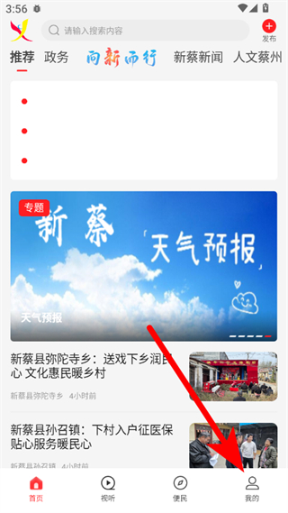 1、在云上新蔡首頁(yè),點(diǎn)擊右下角我的選項(xiàng),進(jìn)入個(gè)人界面。