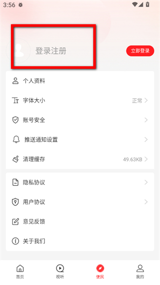 2、在個(gè)人界面,點(diǎn)擊登錄注冊(cè)區(qū)域,進(jìn)入登錄頁(yè)面。