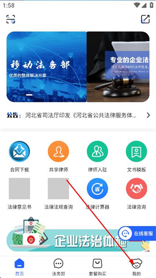 1、打開律小友APP,點(diǎn)擊底部導(dǎo)航欄最右側(cè)的我的選項(xiàng)。