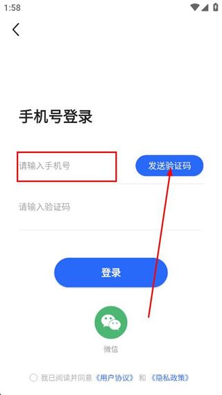 3、在請(qǐng)輸入手機(jī)號(hào)欄填寫手機(jī)號(hào)碼,點(diǎn)擊發(fā)送驗(yàn)證碼。