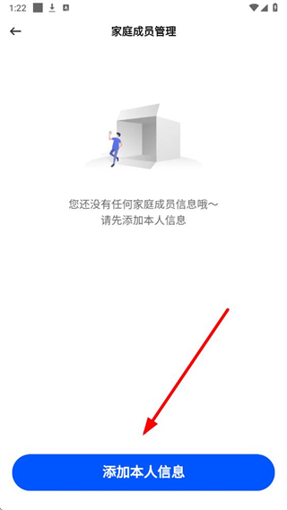 3、在家庭成員管理頁面,點擊添加本人信息按鈕,進入添加本人信息頁面。