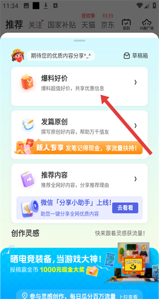 3、創(chuàng)作選擇頁面點擊“爆料好價”,進入發(fā)爆料頁面。