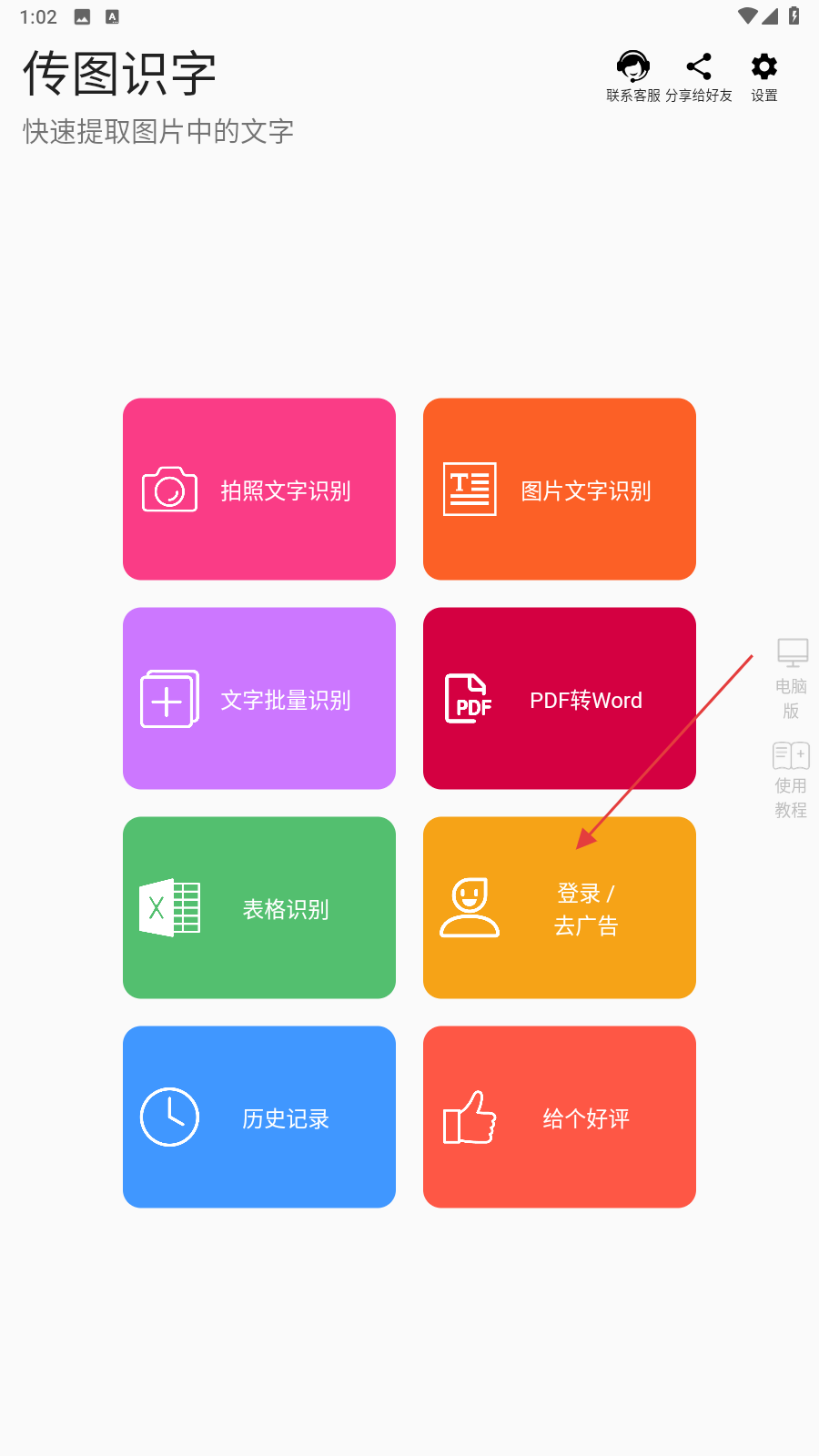 2、進(jìn)入到首頁(yè)內(nèi),點(diǎn)擊登錄/去廣告的按鈕。