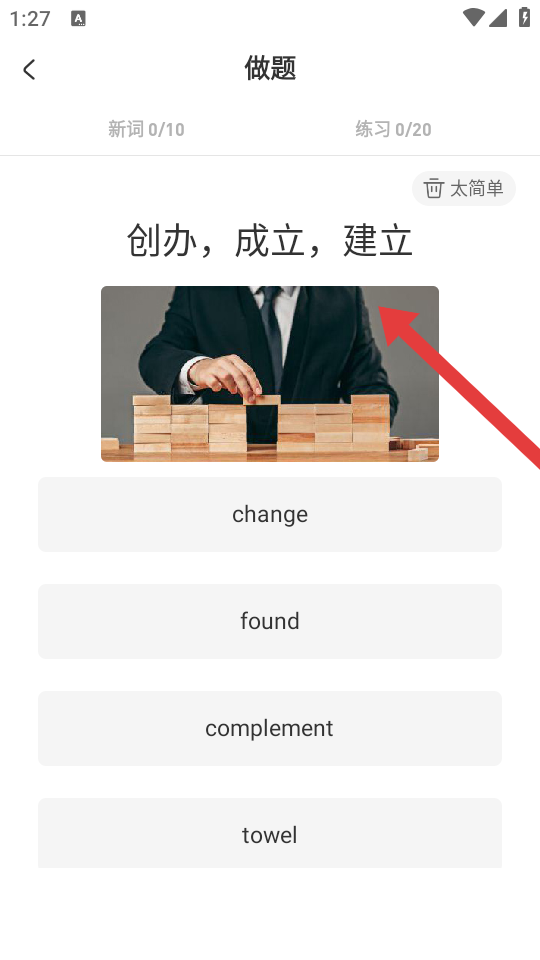 4、進(jìn)入做題的環(huán)節(jié),需要根據(jù)詞義和圖片提示,選擇正確單詞。