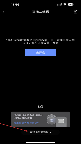 2、進入掃描二維碼的頁面內(nèi),點擊下方按設(shè)備型號添加。