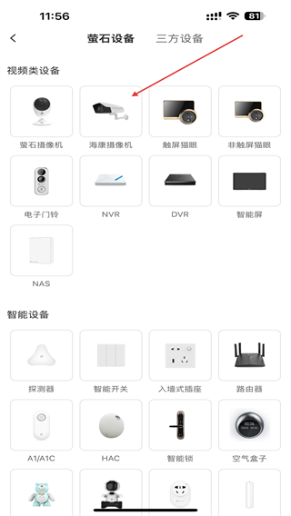 3、進入螢石設(shè)備的頁面內(nèi),選擇并點擊即可添加成功。