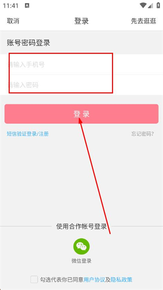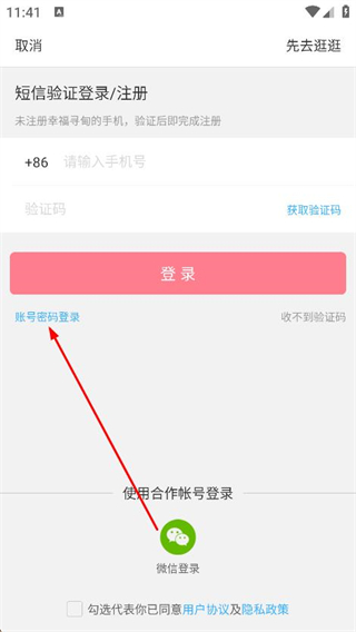 3、進入登錄界面,點擊下方的賬號密碼登錄。