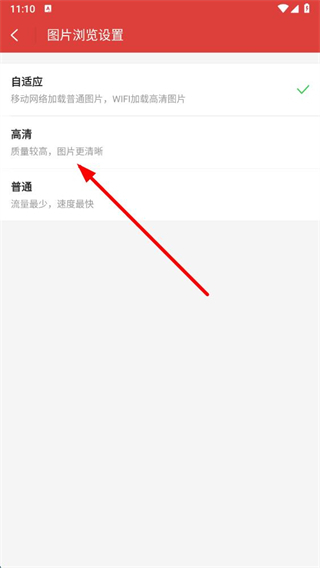 4、在圖片瀏覽設置頁面,點擊高清選項即可設置高清瀏覽圖片。