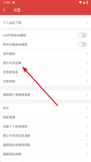 3、進入設置頁面后,點擊圖片瀏覽設置選項。
