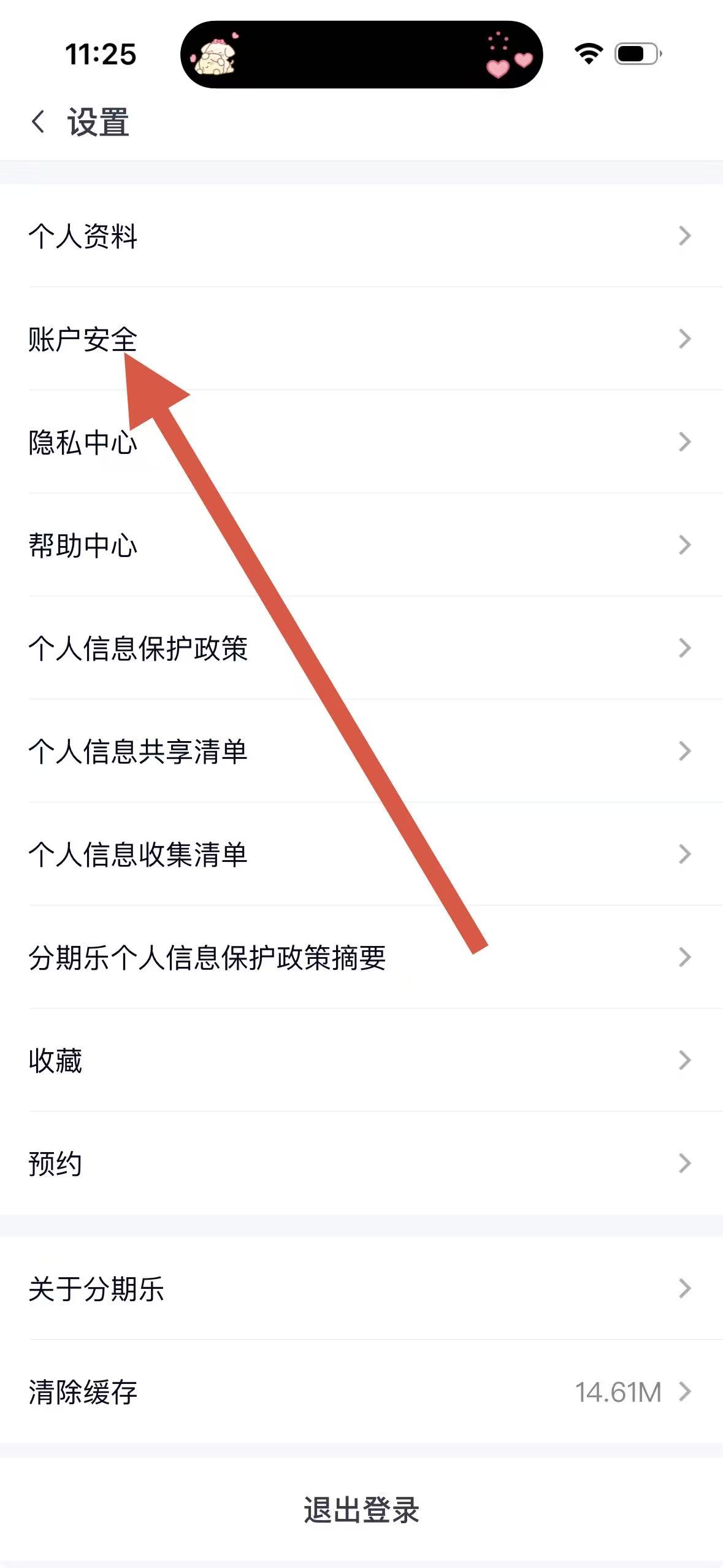 3、在設(shè)置頁(yè)面里,點(diǎn)擊賬戶安全選項(xiàng),進(jìn)入賬戶安全設(shè)置界面。