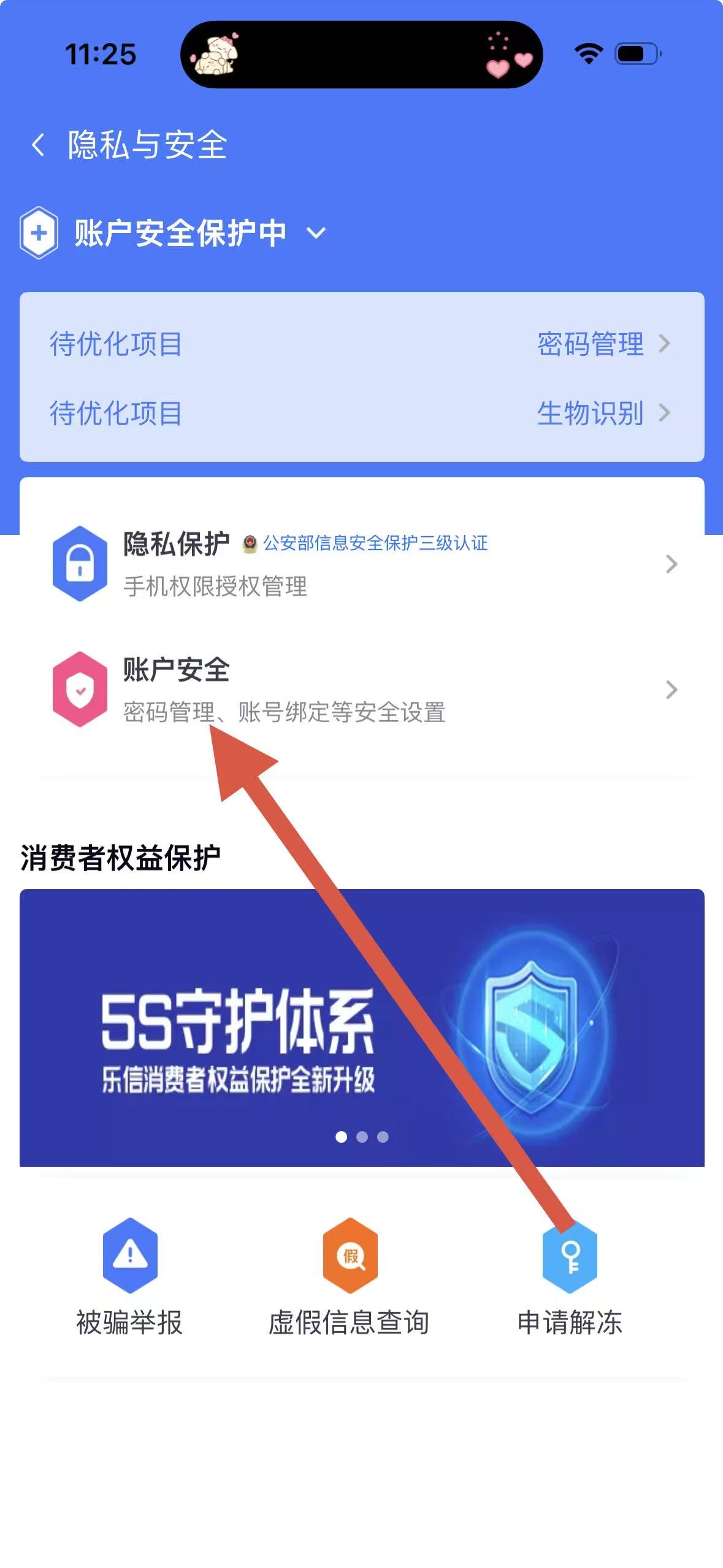 4、在賬戶安全界面中,找到并點(diǎn)擊賬戶安全選項(xiàng),進(jìn)入下級(jí)頁(yè)面。