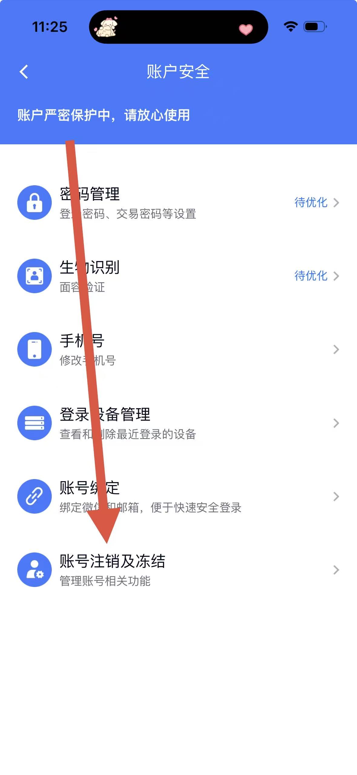 5、在新頁(yè)面里,點(diǎn)擊賬號(hào)注銷及凍結(jié),然后按提示完成后續(xù)注銷操作。