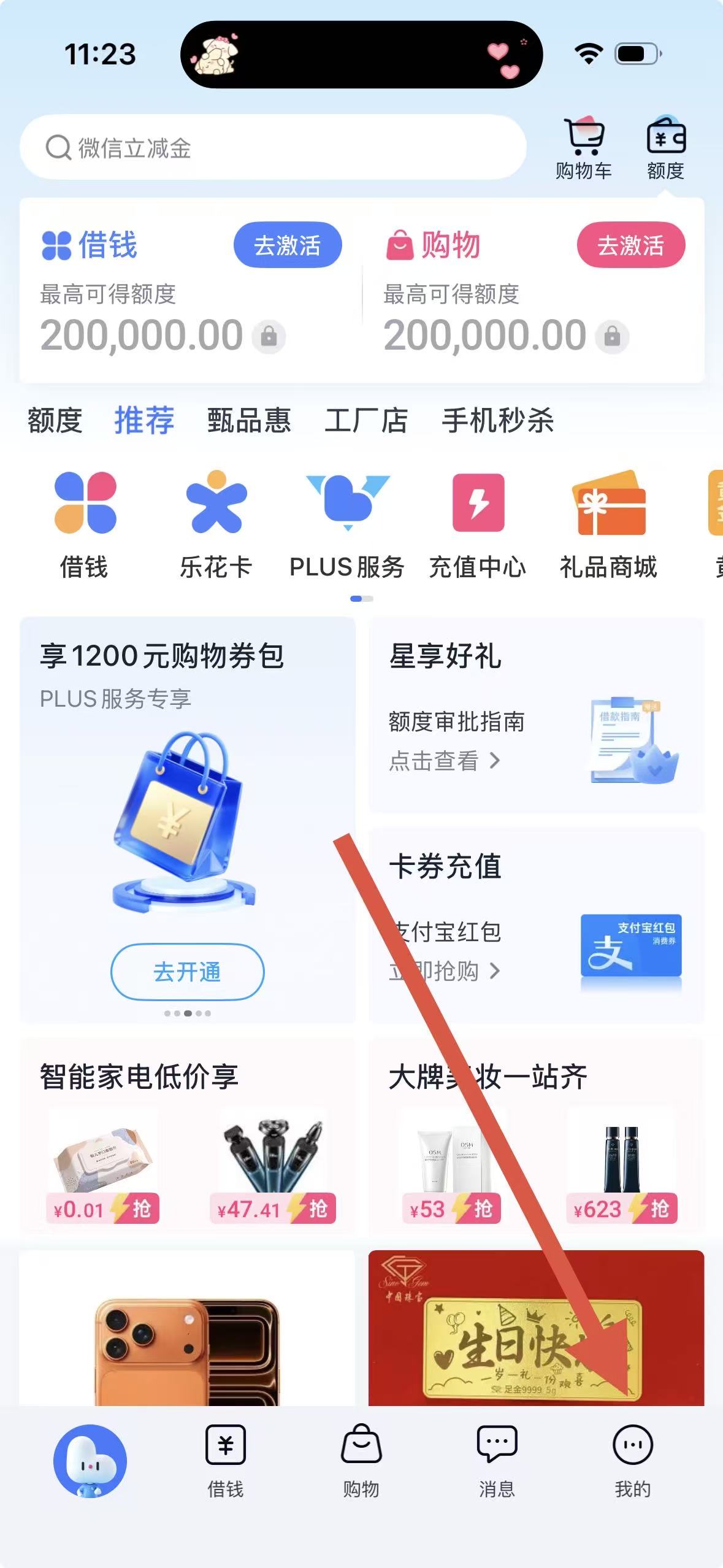 1、打開分期樂app,點(diǎn)擊底部導(dǎo)航欄中的我的選項(xiàng),進(jìn)入個(gè)人界面。