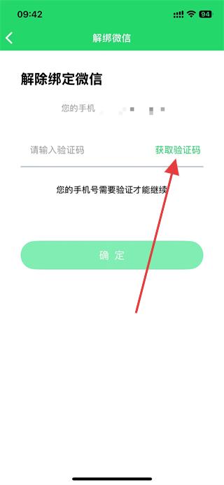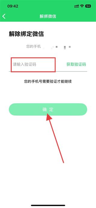 4、輸入驗證碼,點擊確定即可完成微信解綁操作。