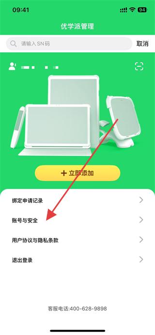 1、打開優(yōu)學(xué)派管理app,點擊賬號與安全選項。