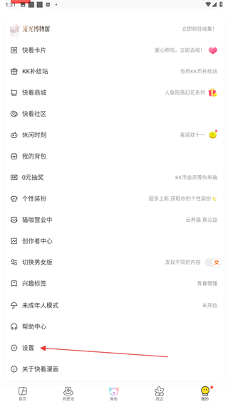 1、啟動快看漫畫的APP,進(jìn)入時點(diǎn)擊導(dǎo)航欄中我的按鈕。