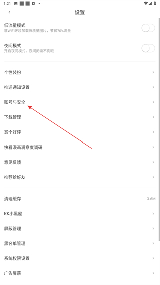 3、進(jìn)入設(shè)置的界面內(nèi),點(diǎn)擊賬號與安全的功能按鈕。