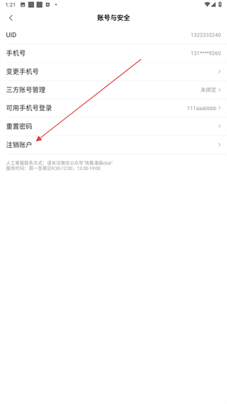 4、在賬號與安全的界面內(nèi),點(diǎn)擊注銷賬戶即可完成注銷。
