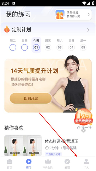 1、打開每日瑜伽APP,點擊底部個人選項。