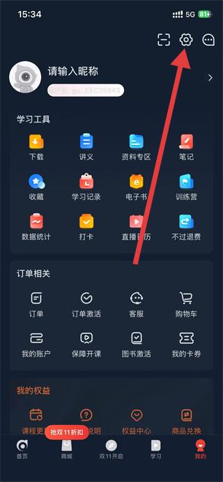 2、在我的頁(yè)面中,找到并點(diǎn)擊右上角的設(shè)置圖標(biāo)。