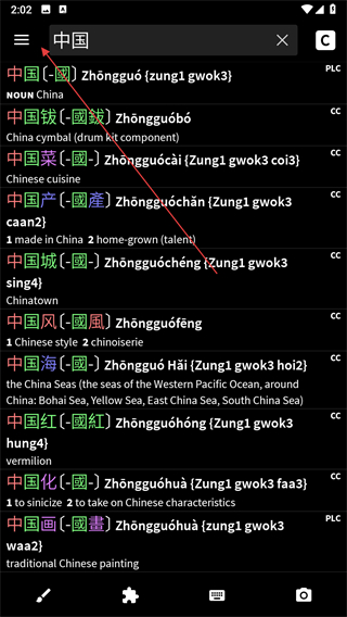 1、打開Pleco應(yīng)用,點(diǎn)擊左上角的三條橫線菜單按鈕。