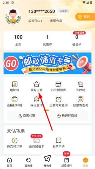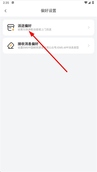 2、在偏好設置界面,點擊派送偏好,進入派送偏好設置頁面。