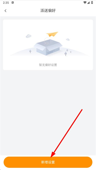 3、在派送偏好頁面,點擊新增設置,進入派送偏好設置詳情界面。
