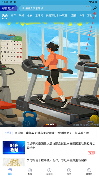 1、打開河北廣播電視臺APP,進入時點擊右上角人像的圖標。