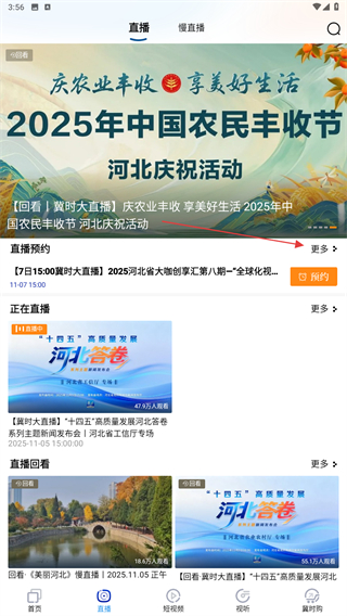 1.通過“冀時”APP客戶端,用戶可以更方便的觀看河北衛(wèi)視的在線直播以及節(jié)目回看。