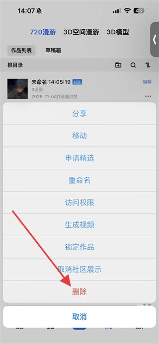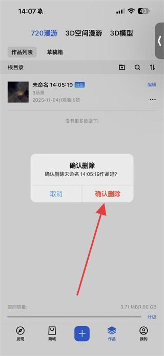 4、在提示框中點擊確認刪除,即可完成720云作品的刪除操作。