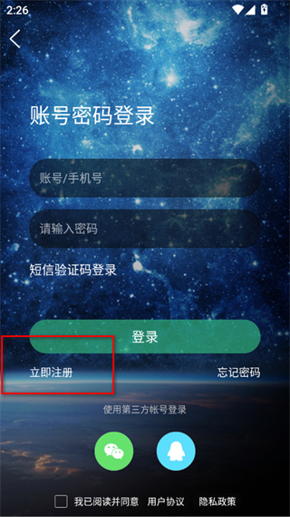 3、在登錄頁面點擊立即注冊,進入注冊頁面。