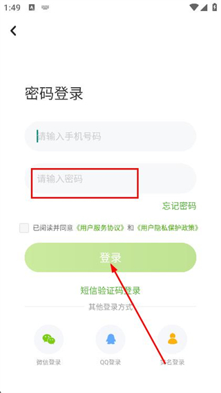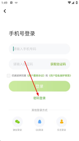 2、在登錄頁(yè)面中,找到并點(diǎn)擊下方密碼登錄選項(xiàng)。