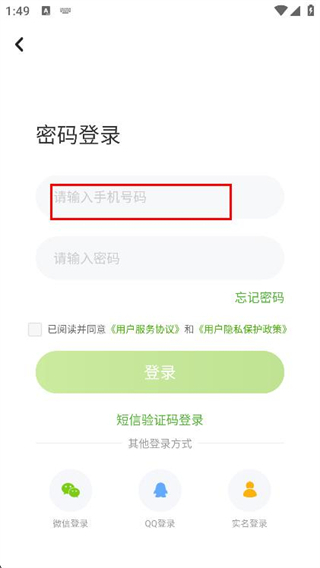 3、在手機(jī)號(hào)碼輸入框中,填寫(xiě)需要登錄的手機(jī)號(hào)。