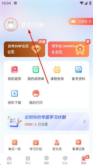 2、在我的頁面中,找到并點(diǎn)擊上方的登錄/注冊(cè)選項(xiàng)。