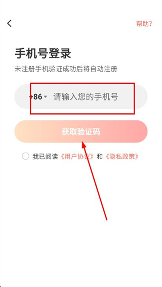 3、在手機(jī)號(hào)登錄頁面,輸入手機(jī)號(hào),點(diǎn)擊獲取驗(yàn)證碼。